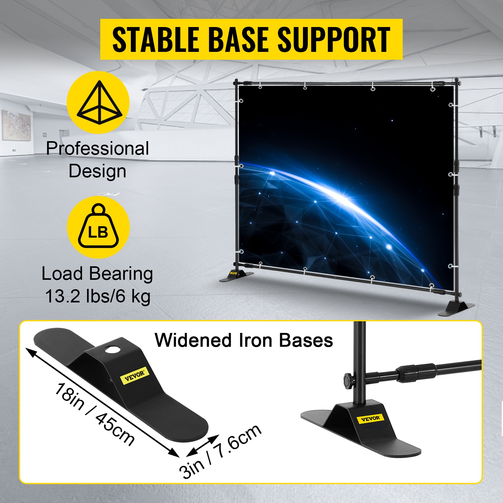 Tämä säädettävä taustabanneriteline sopii erinomaisesti valokuvaustaustoihin, messuille, tapahtumiin ja yritysesittelyihin. Kestävä ja kevyt alumiinirunko sekä säädettävä korkeus ja leveys tekevät siitä joustavan ratkaisun erikokoisille bannereille.