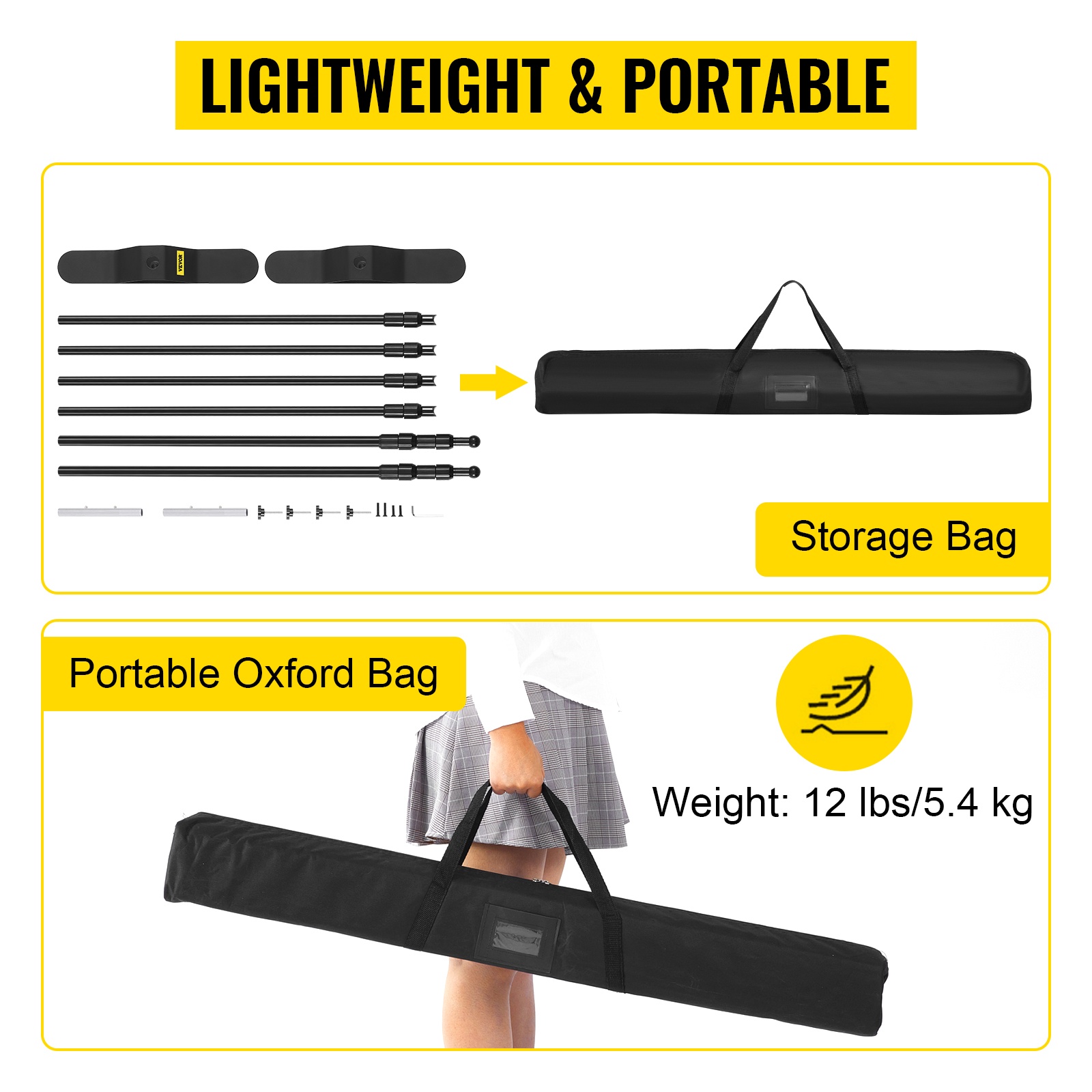 Koko setti on pakattu kantolaukkuun, jossa se vie vähän tilaa ja on helppo ottaa mukaan. Telineen paino on 13.2 lbs / 6 kg, joten sitä on helppo siirtää paikasta toiseen.