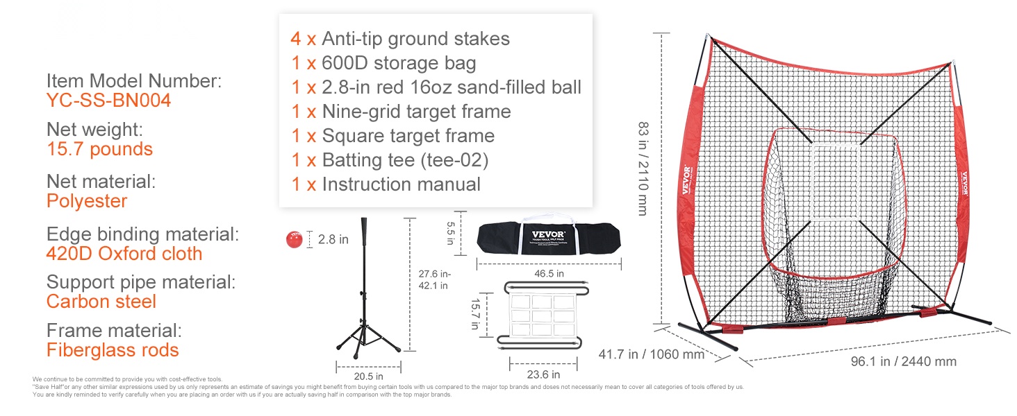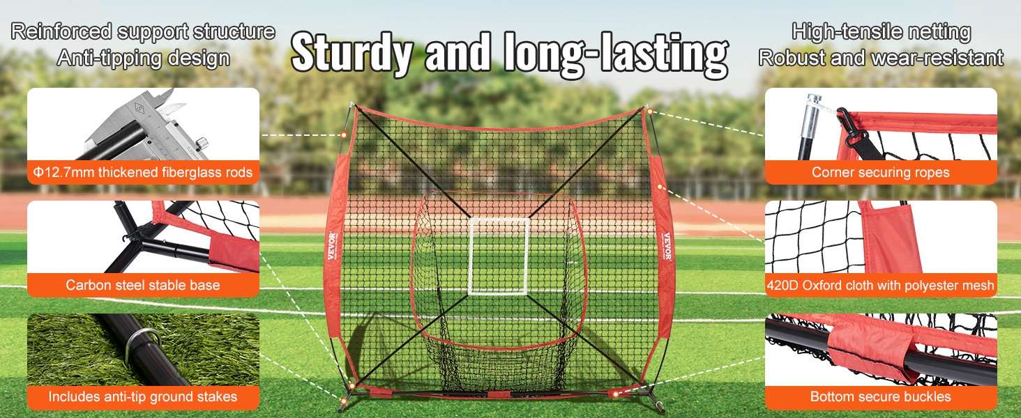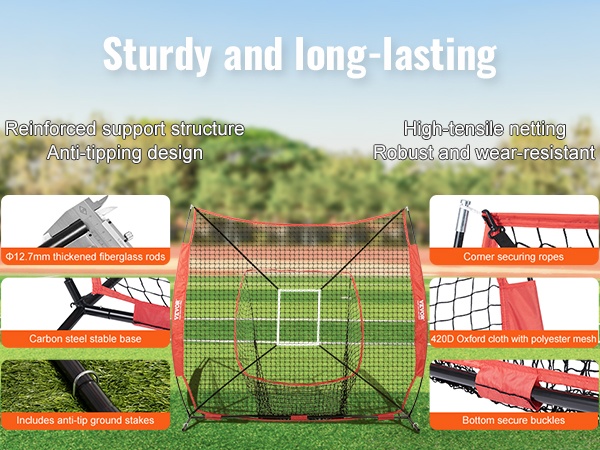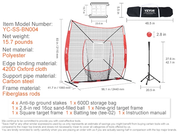 Baseball ja softball harjoitusverkko polyesteristä 84x41,7 tuumaa 12,7 mm lasikuitutangot
