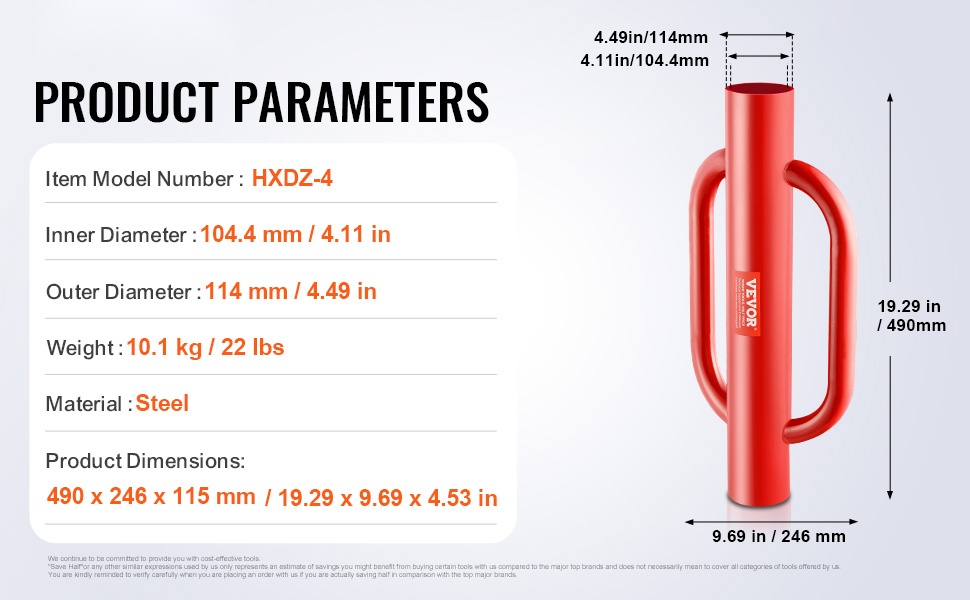 - Mukana tulevien paaluohjausholkkien halkaisijat: 49mm, 69mm, 100mm