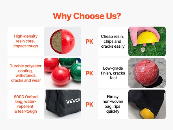 Pallot on valmistettu korkeatiheyksisestä hartsiytimestä ja kestävästä ulkokuoresta, ja mukana tuleva vettähylkivä kantolaukku suojaa settiä kuljetuksen ja säilytyksen aikana. Setti kestää pitkäaikaista käyttöä vaihtelevissa ulko-olosuhteissa.