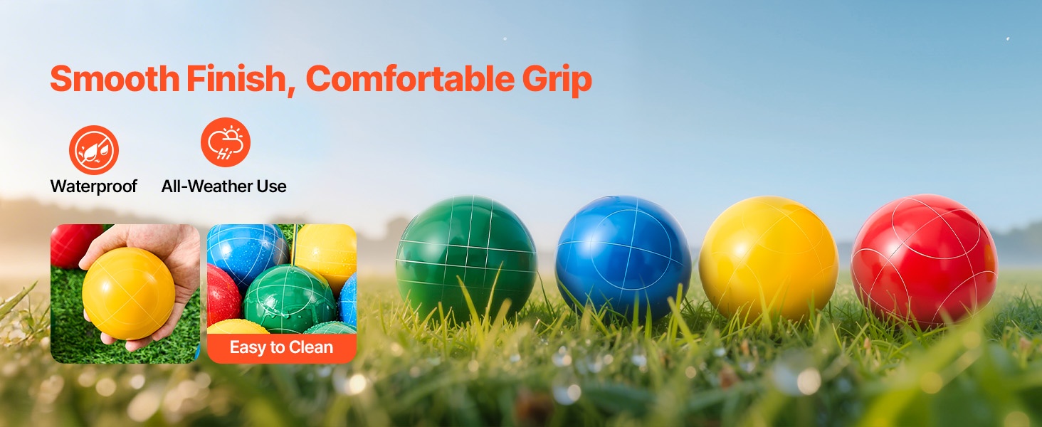 Sileät hartsipallot istuvat hyvin käteen ja tarjoavat varman otteen. Vesipestävä pinta helpottaa puhdistusta ja mahdollistaa pelaamisen erilaisissa sääolosuhteissa.