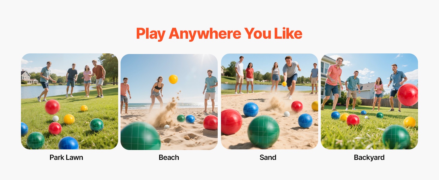 Tartu täydelliseen bocce-pallopeliin ja lähde ulos pelaamaan. Nauti yhteisistä pelihetkistä perheen ja ystävien kanssa puistossa, rannalla tai omalla pihalla.