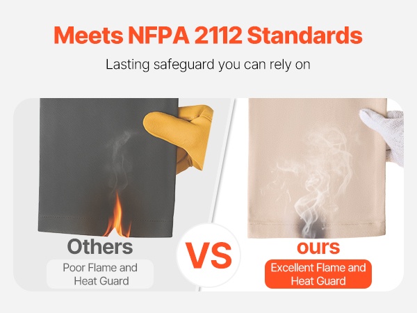 Housut täyttävät NFPA 2112 -standardin vaatimukset pystysuuntaisessa liekkitestissä, lämmönkestävyydessä ja lämpösuojassa. Tämä tarjoaa luotettavan vaihtoehdon työtehtäviin, joissa työskennellään korkeiden lämpötilojen ja kipinöiden läheisyydessä.