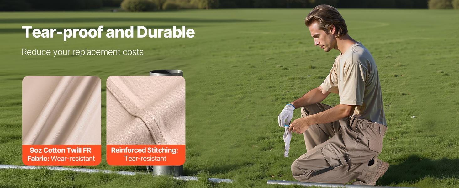 Housut on valmistettu 9 oz palosuojatusta puuvillatvillistä. Raskas ja vahvistettu ommelrakenne kestää hyvin hankausta ja repeytymistä, mikä vähentää saumojen aukeamista vaativissa työolosuhteissa ja pidentää housujen käyttöikää.
