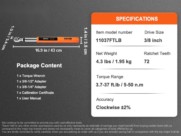 Tämä tarkka digitaalinen momenttiavain soveltuu hyvin esimerkiksi ajoneuvojen, tarkkuuslaitteiden ja muiden arvokkaiden komponenttien huoltoon. Momenttialue on 25-250 ft.lb / 34-340 n.m ja tarkkuus jopa ±2%, mikä auttaa saavuttamaan tasaisen ja turvallisen kiristystuloksen.