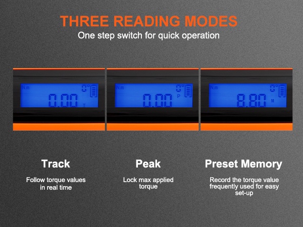 Reaaliaikaista tilaa, huippuarvotilaa ja esiasetusten muistitoimintoa voi vaihtaa nopeasti käyttötarpeen mukaan. Näin momenttiavain tukee sekä jatkuvaa seurantaa että ennalta asetettujen momenttiarvojen toistettavaa käyttöä.