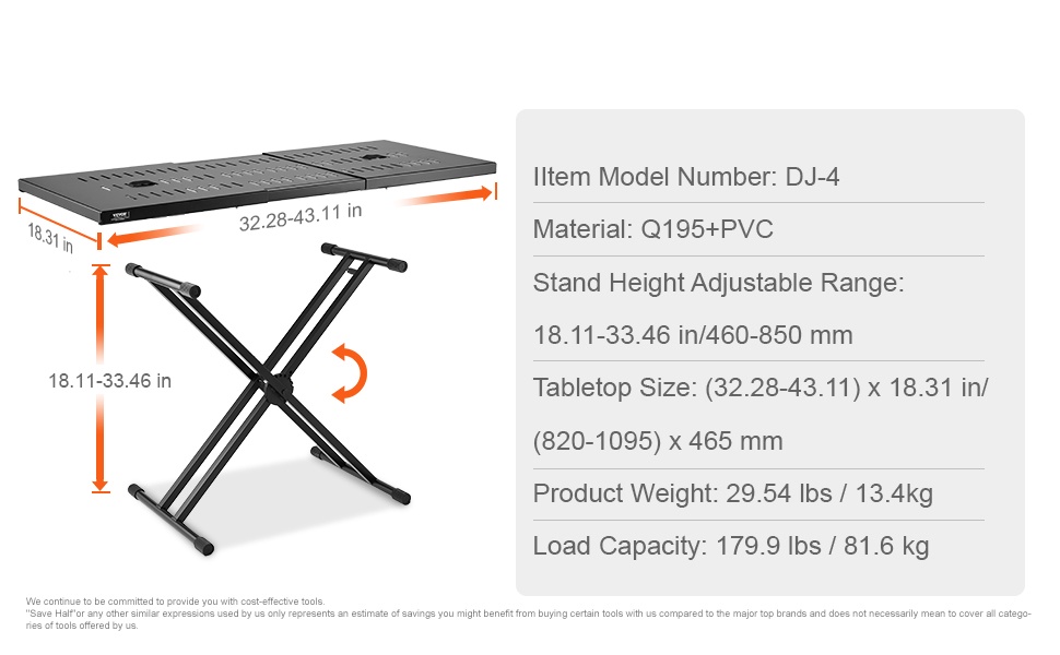 Tämä DJ-pöytäteline on valmistettu seosteräksestä, joka takaa tukevan ja kestävän rakenteen. Teline kantaa useita äänilaitteita jopa 180 paunaan asti ilman heilumista tai vääntymistä, joten laitteet pysyvät turvallisesti paikoillaan.