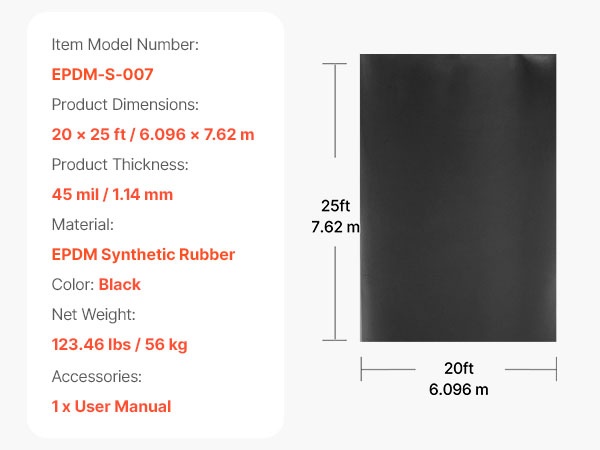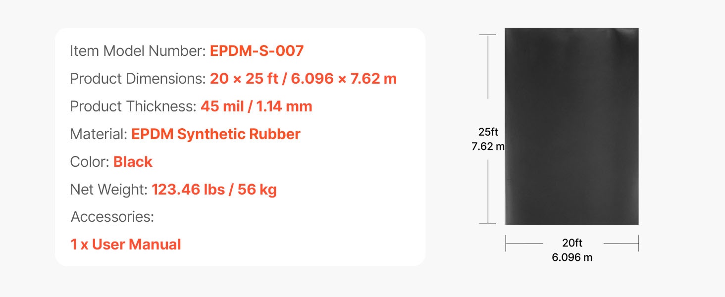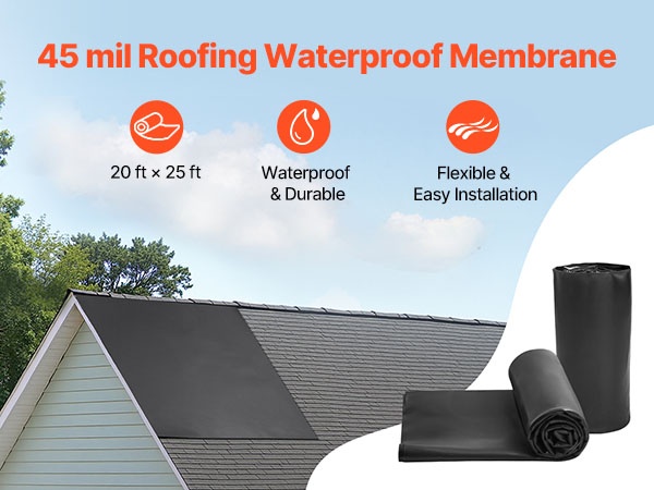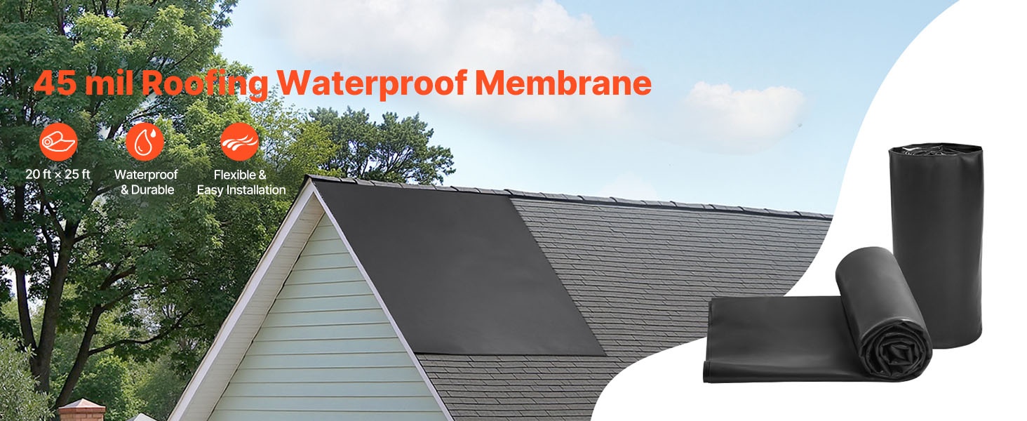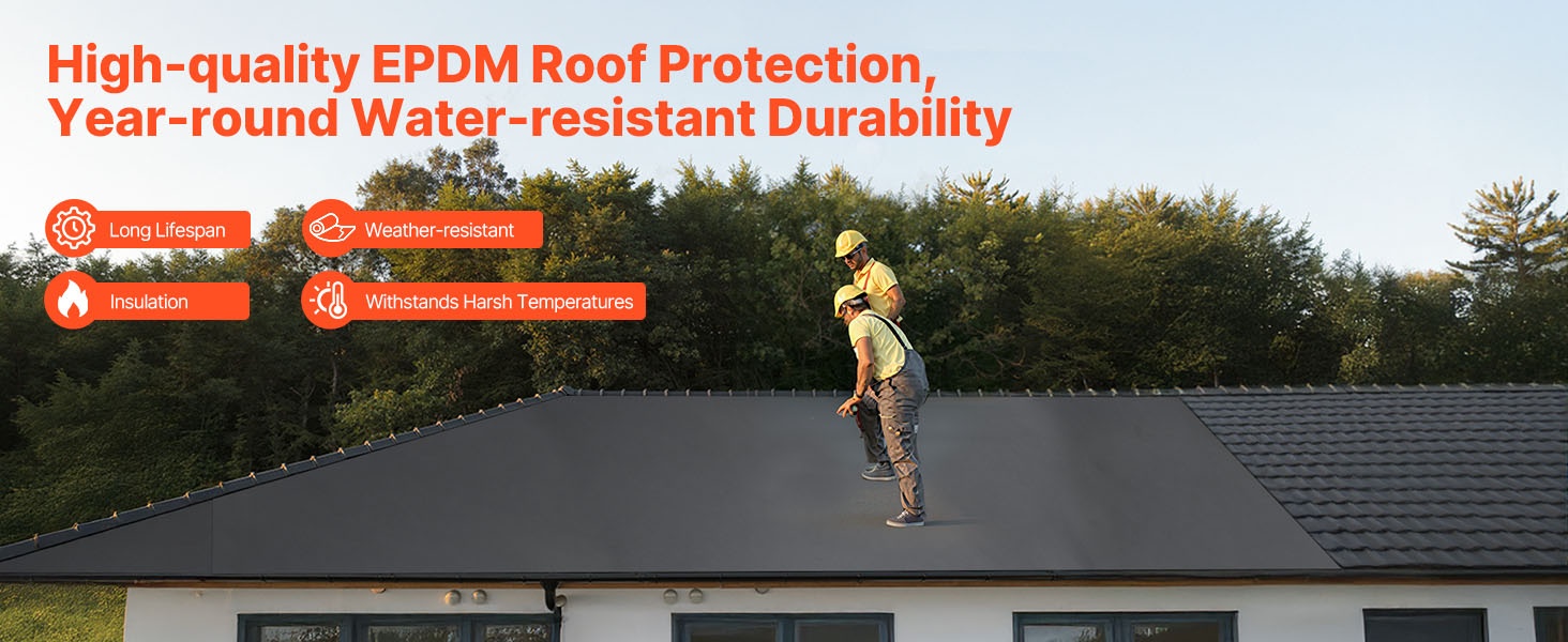 - 45 mil / 1.14 mm paksu EPDM-synteettinen kumi tehokkaaseen vedeneristykseen
