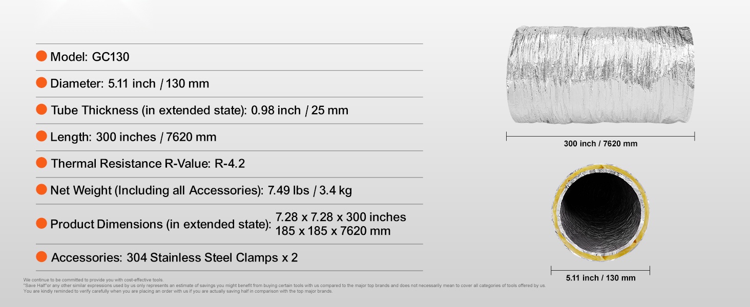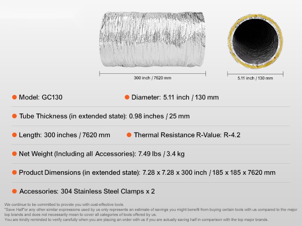 - Toimitussisältö: eristetty joustava kanava, 2 kanavakiristintä
