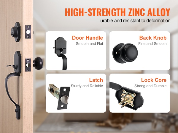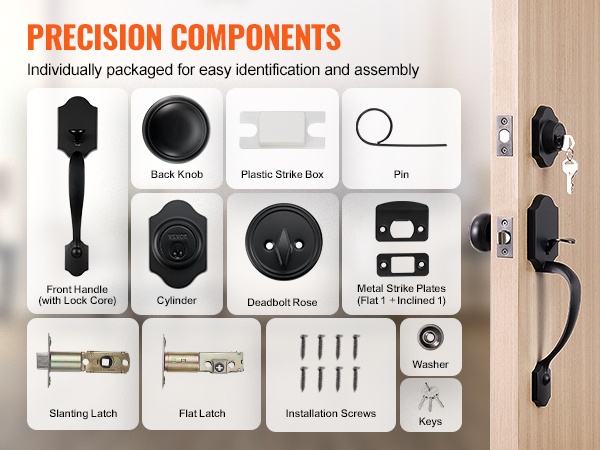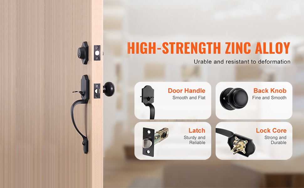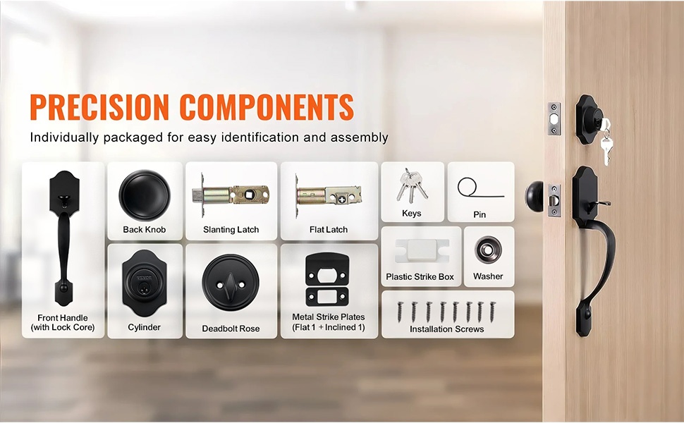 Nauti kätevästä kulusta ja parannetusta kotiturvallisuudesta tukevan etuoven lukitussetin avulla. Paketissa on ulkokahva, sisänuppi ja varmuuslukko, jotka sopivat useimpiin tavallisiin oviin ilman lisäporauksia.