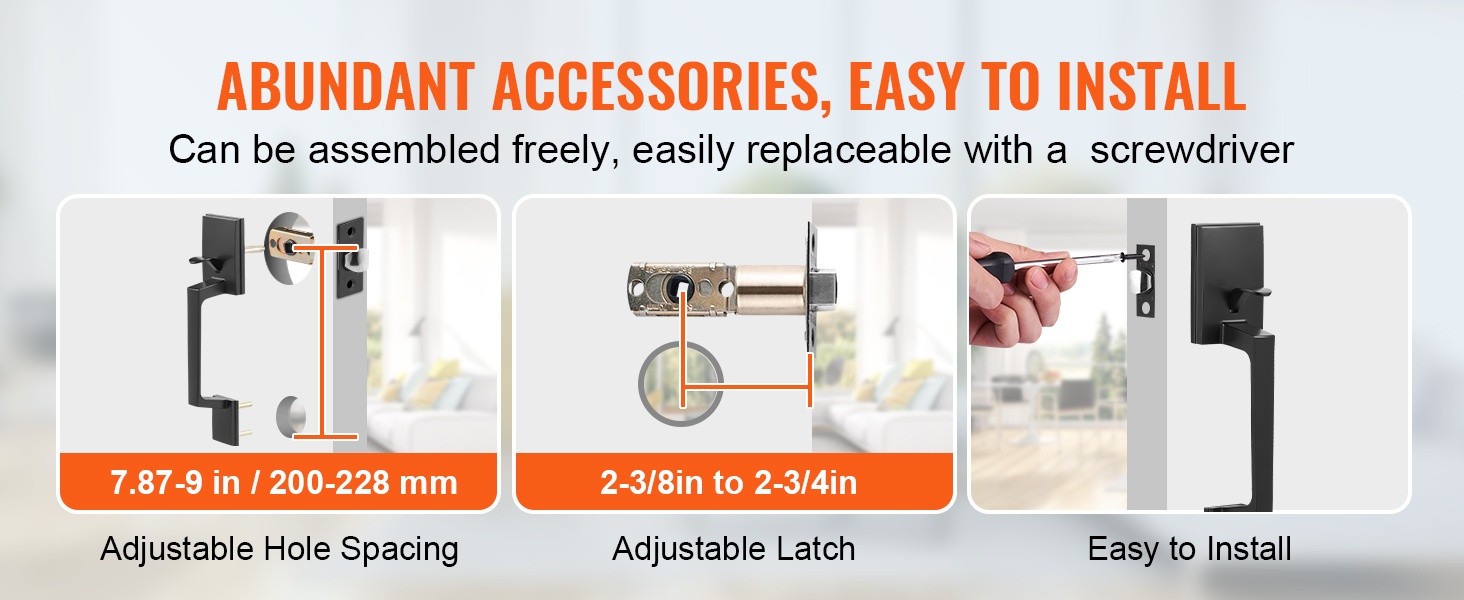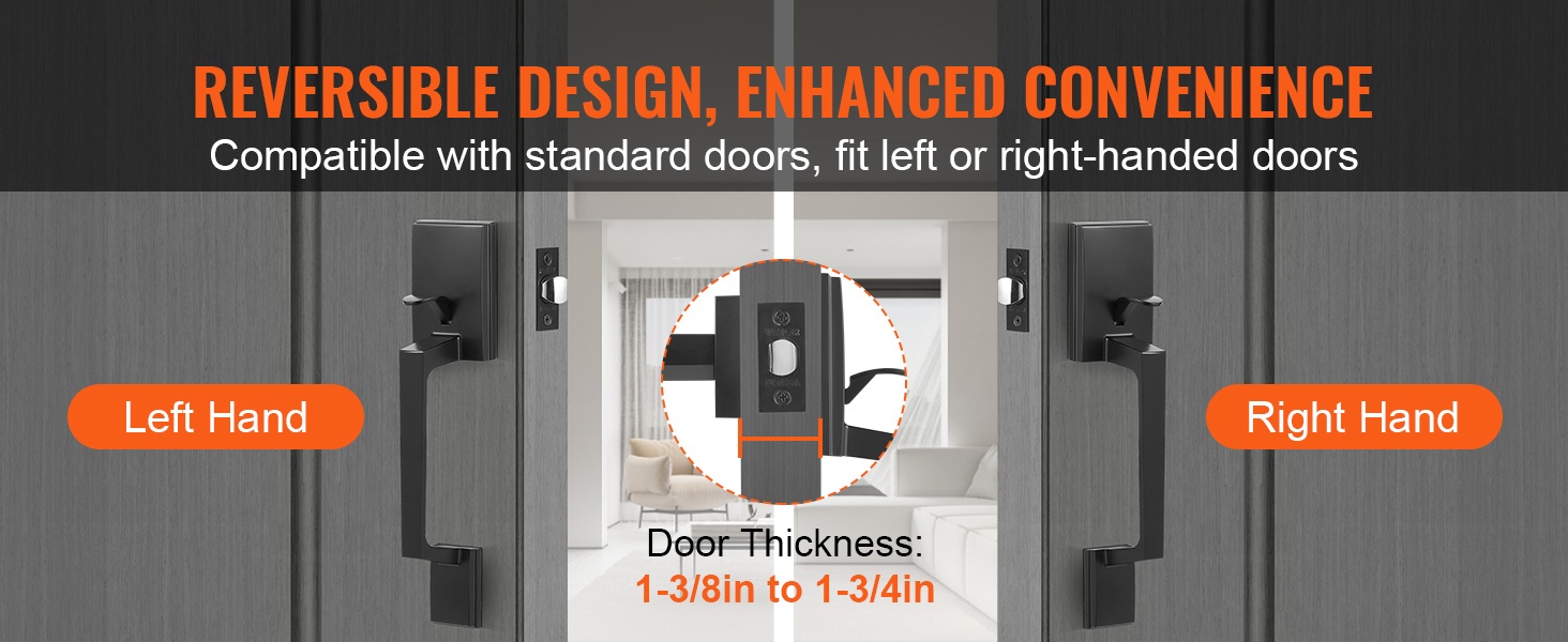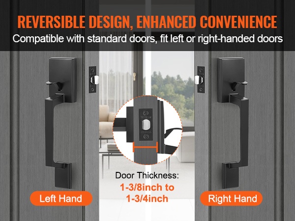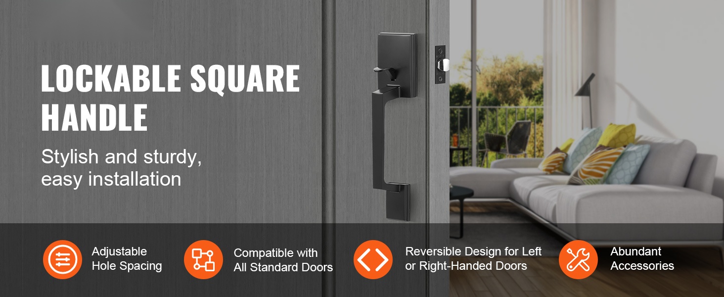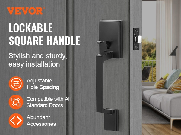 Tämä neliönmuotoinen etuoven vedinsarja yhdistää selkeän muotoilun ja kestävän rakenteen. Kääntyvä rakenne sopii sekä oikea- että vasenkätisiin oviin, ja säädettävät osat tekevät siitä helpon ratkaisun ulko-oviin, takaoviin tai toimiston sisäänkäyntiin.