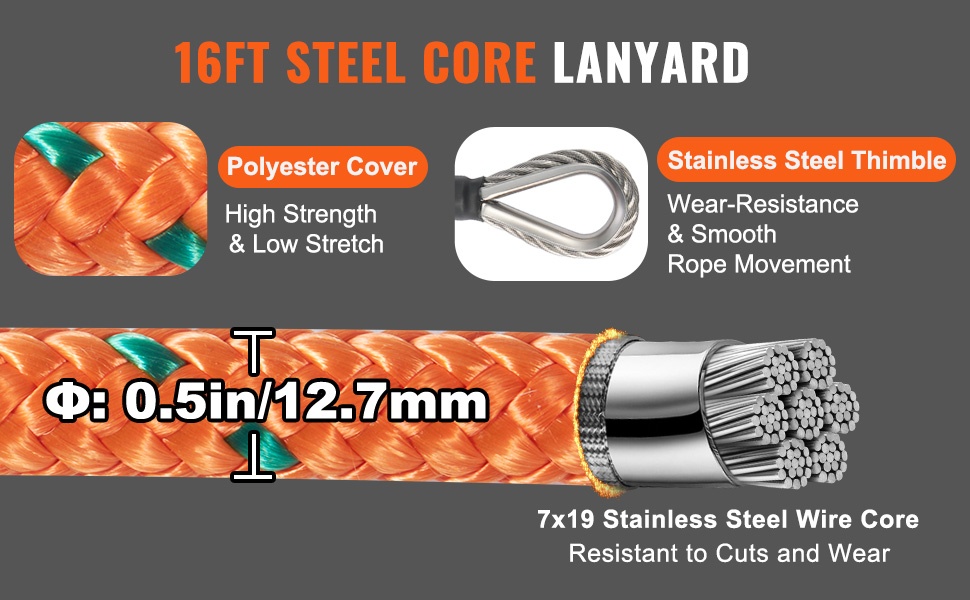 Tämä Φ0.6'' (noin 16 mm) terässydämellinen flipline on valmistettu lujasta polyesterista ja ruostumattomasta teräsvaijerista. Rakenne kestää hyvin kulutusta ja viiltoja, ja kaapelin jäykkyys helpottaa köyden hallintaa puussa työskennellessä.