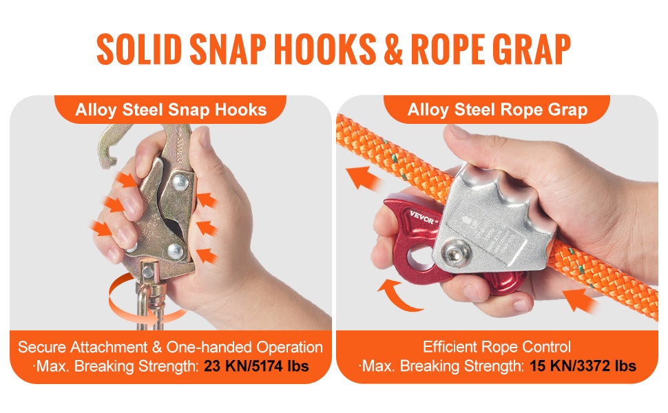 Flipline on varustettu kääntyvällä sulkukoukulla, jonka murtolujuus on 23 KN/5174 lbs, turvalliseen kiinnitykseen putoamissuojausjärjestelmääsi. Alumiiniseoksesta valmistettu köyden säätölaite (murtolujuus 15 KN/3372 lbs) mahdollistaa sujuvan liikkumisen ja köyden pituuden helpon säätämisen työn aikana.