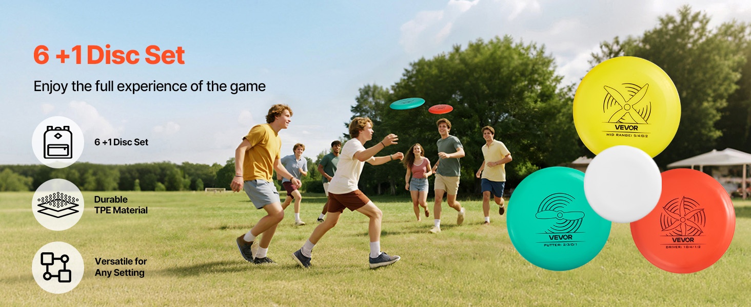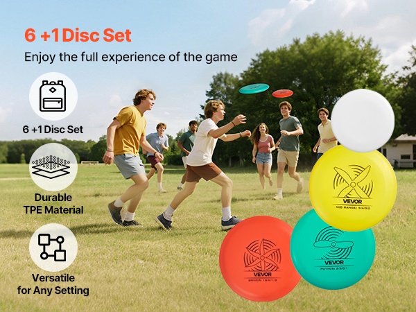 Tämä frisbeegolf-aloituspakkaus sisältää useita eri lentotyylejä, jotka sopivat erilaisiin heittotarpeisiin. Kiekot on valmistettu kestävästä TPE-muovista, joka ehkäisee muodonmuutoksia. Repussa on 3 taskua pienille tavaroille. Jokaisessa kiekossa on oma kuviomallinsa ja selkeät merkinnät. Sopii hyvin puistoihin, nurmikolle, rannalle ja kotipihaan.