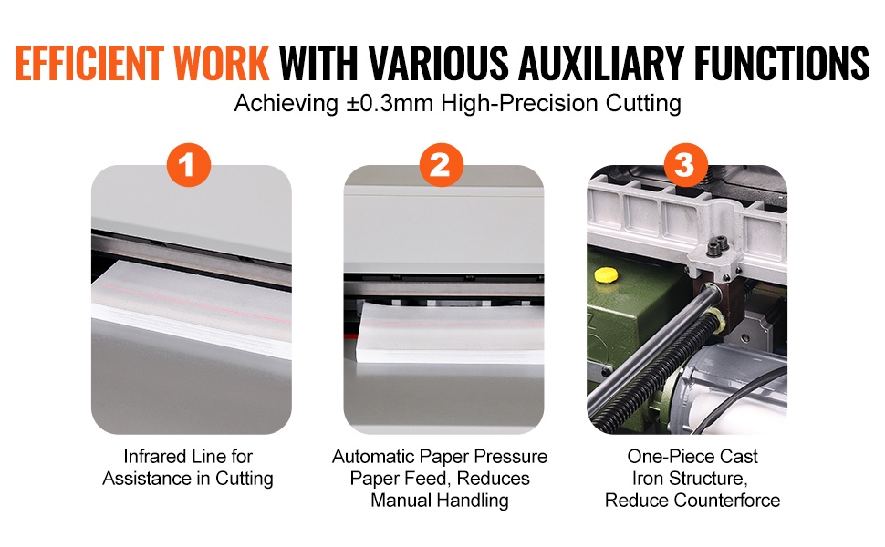 Tämä A3-kokoinen giljotiinipaperileikkuri helpottaa suurten paperipinojen leikkaamista. Enimmäisleikkuukapasiteetti on 400 arkkia, joten se soveltuu erinomaisesti toimistoihin, kopiointipalveluihin, kouluihin ja kotikäyttöön.