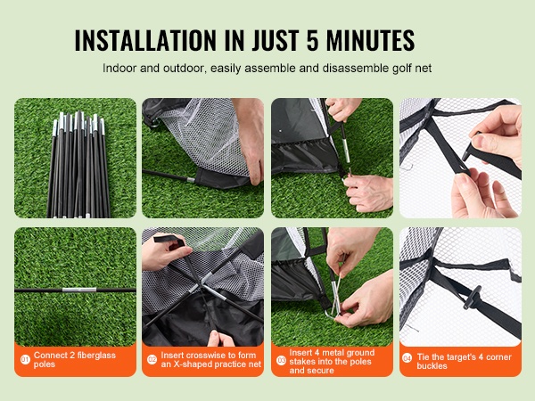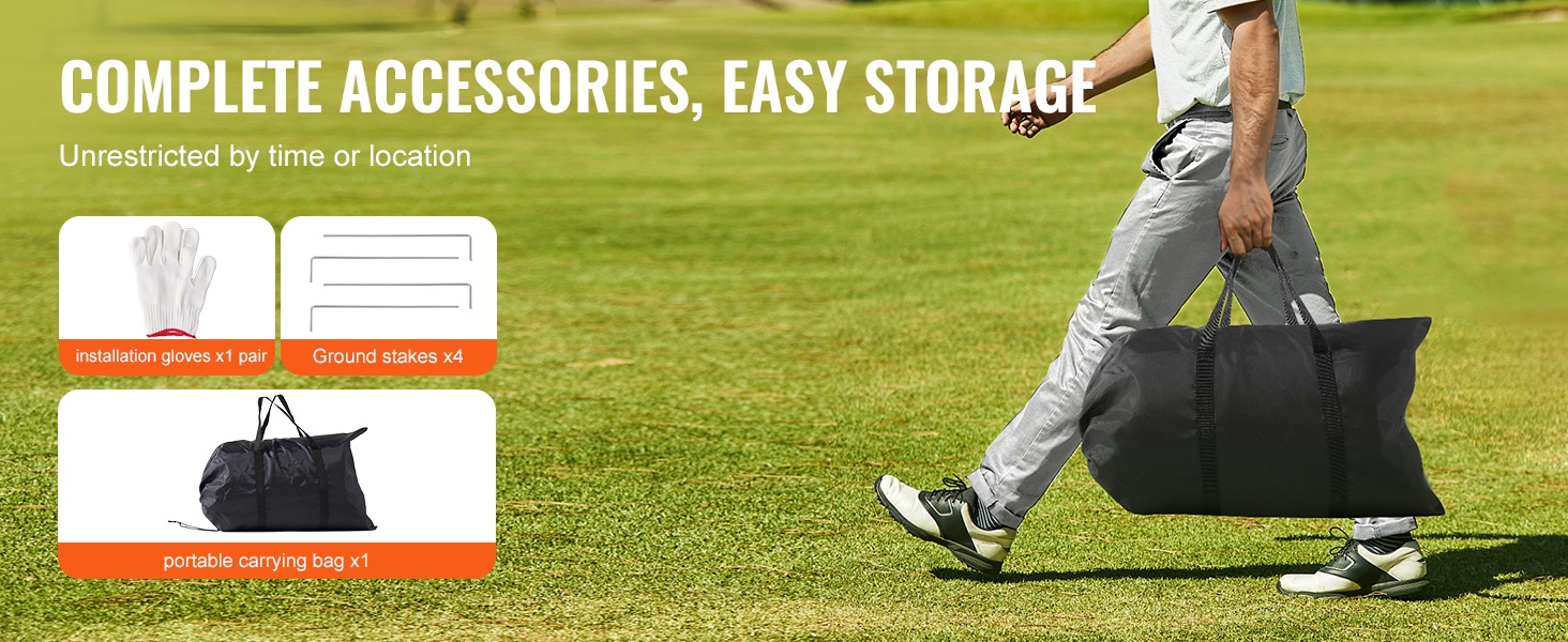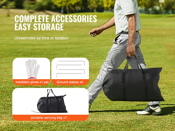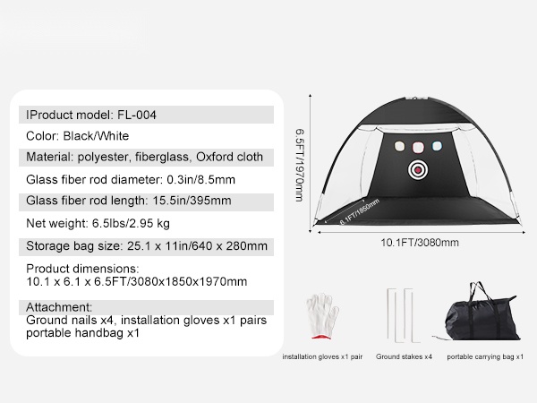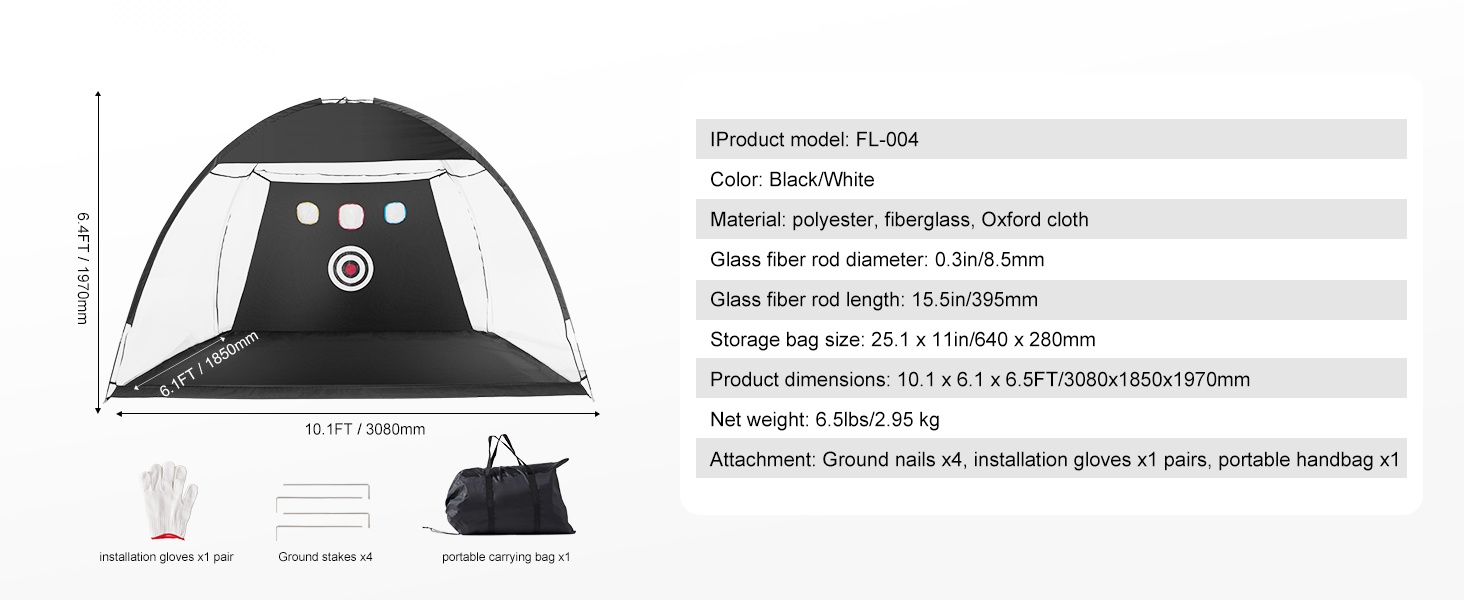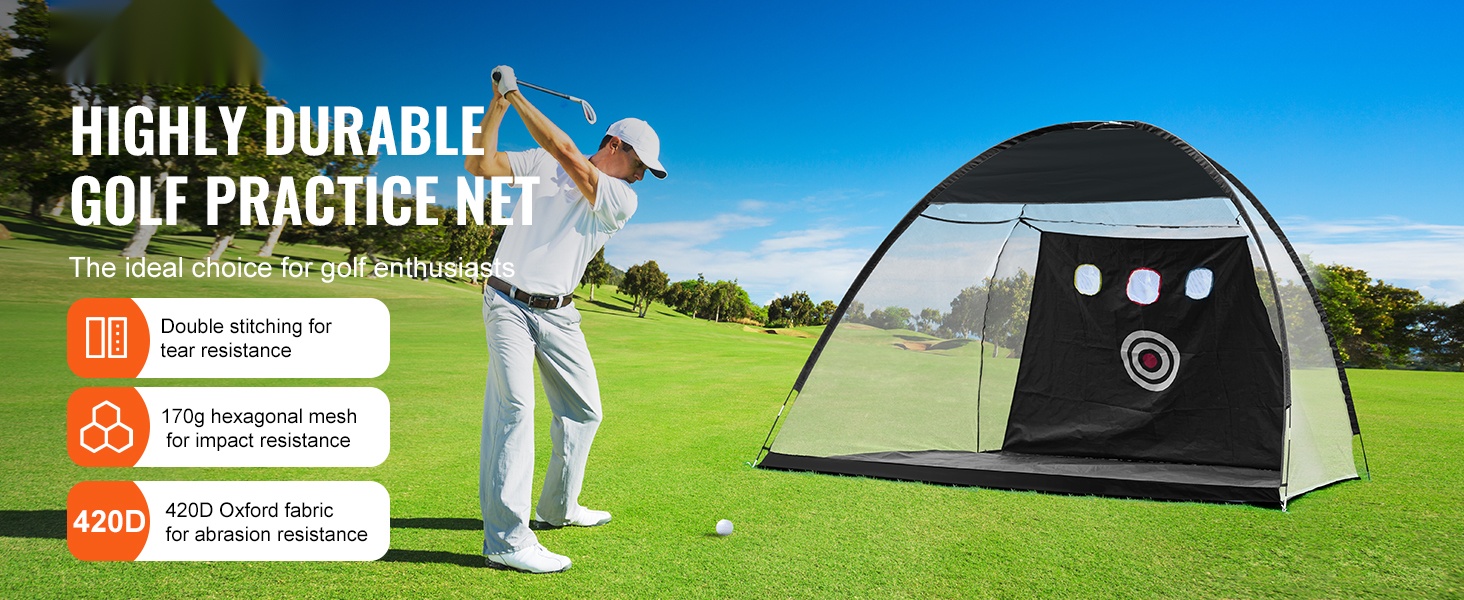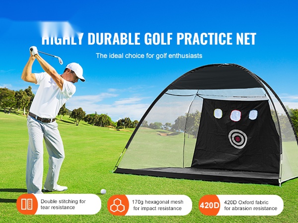 Verkko on valmistettu 210D Oxford-kankaasta ja 3-säikeisestä verkosta. Kaksoistikatut saumat kestävät golfpallon voimakkaan iskun. 0.3 tuuman lasikuitutangot pitävät verkon tukevasti paikoillaan, jotta voit keskittyä lyönteihin huoletta.