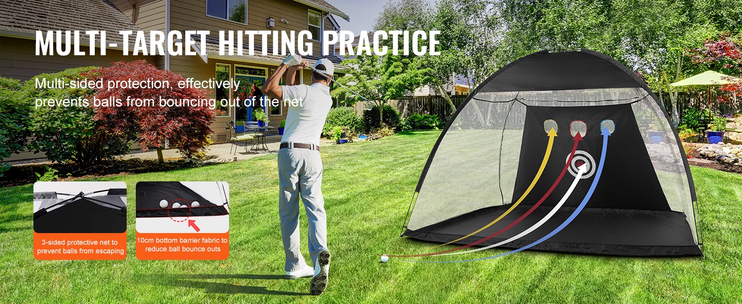 Suuri lyöntiverkko sopii swingi-, chip- ja lyöntiharjoitteluun. Sivujen ja yläosan suojaverkot estävät palloja karkaamasta, ja pohjakangas vähentää pallon kimpoilua sekä pienentää pallojen keräilytarvetta. Soveltuu kaikentasoisille golfin harrastajille.