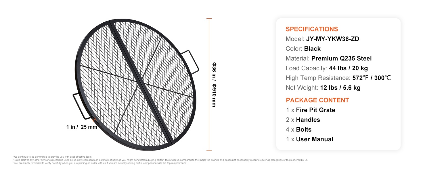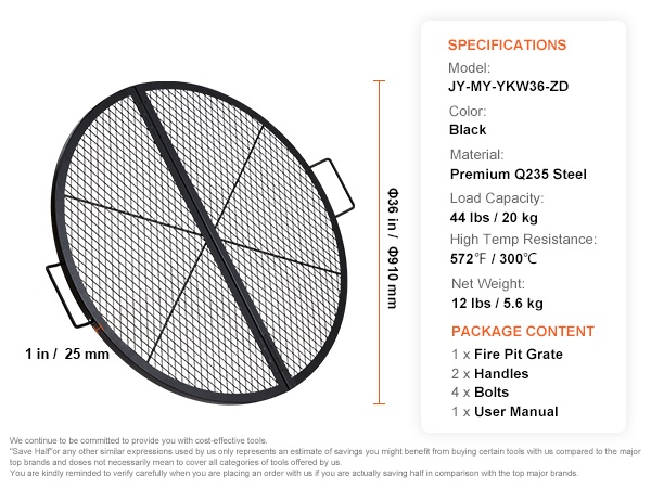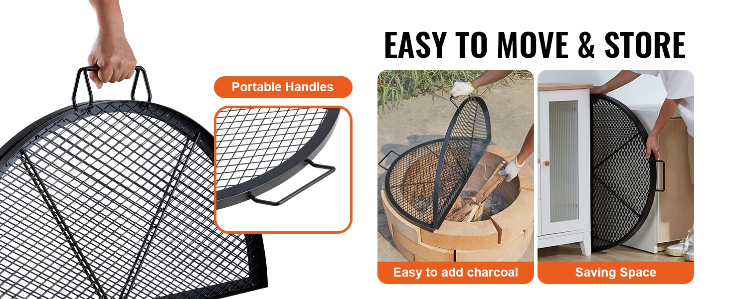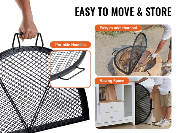 Pyöreä grilliritilä Q235-teräs 76 cm kahvoilla 20 kg kantavuus ulkokäyttöön