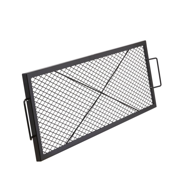 Grilliritilä terästä 111x380 mm musta nuotiolle kantokahvoilla