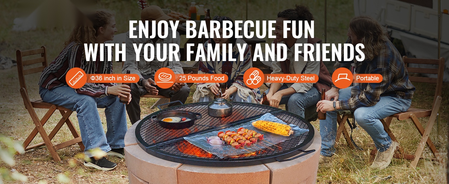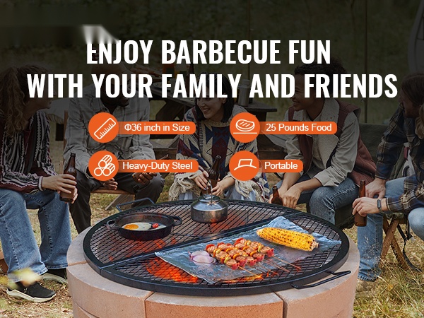 Nuotiogrilli on valmistettu korkealujuuksisesta Q235-teräksestä, joka kestää kulutusta ja säännöllistä käyttöä. Kantavuus on 44 lbs / 20 kg, joten ritilä sopii useimmille padoille ja pannuille.