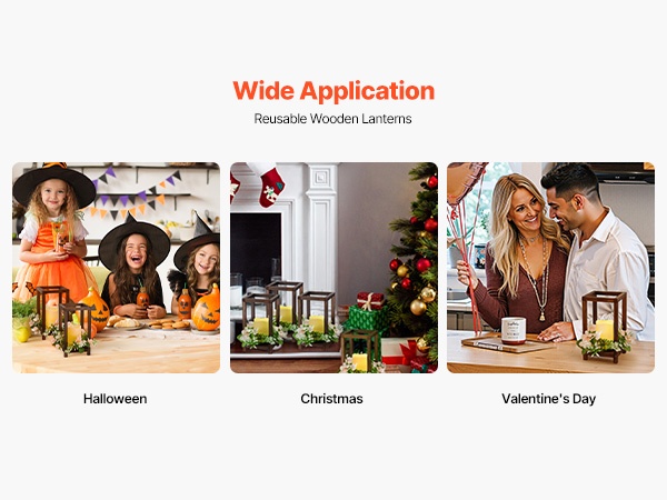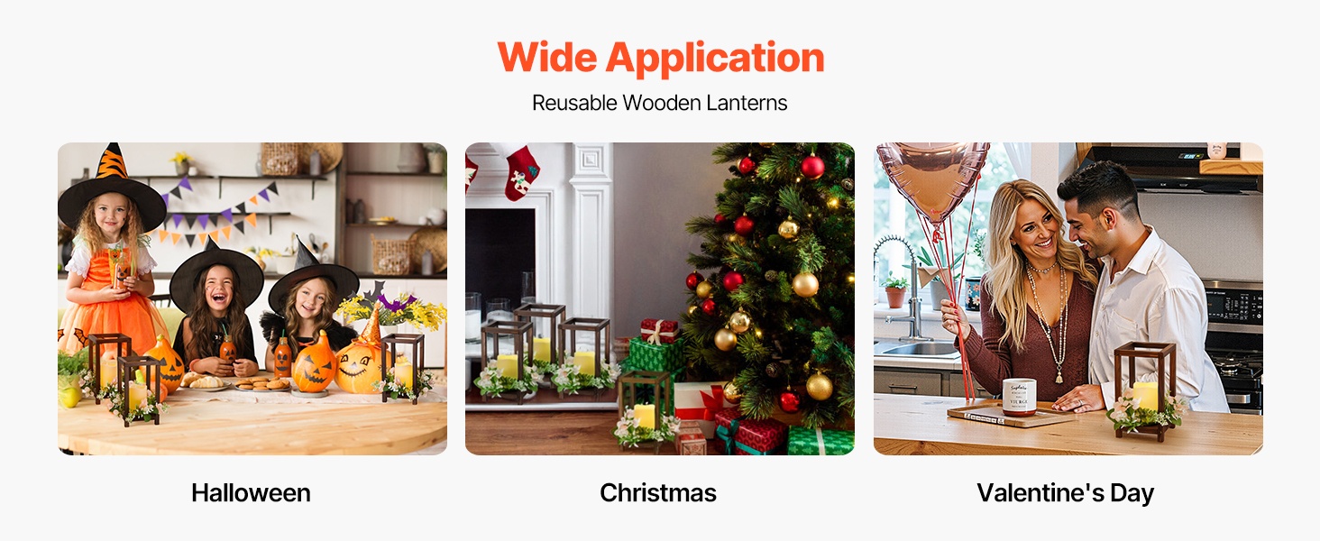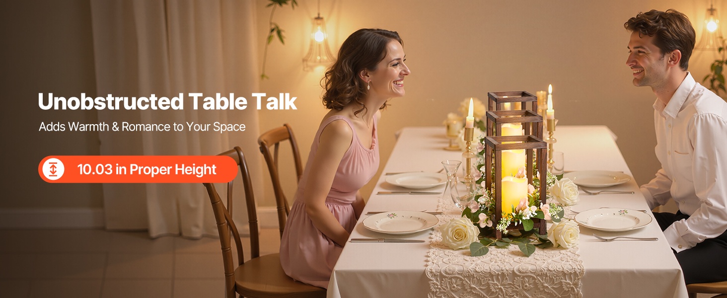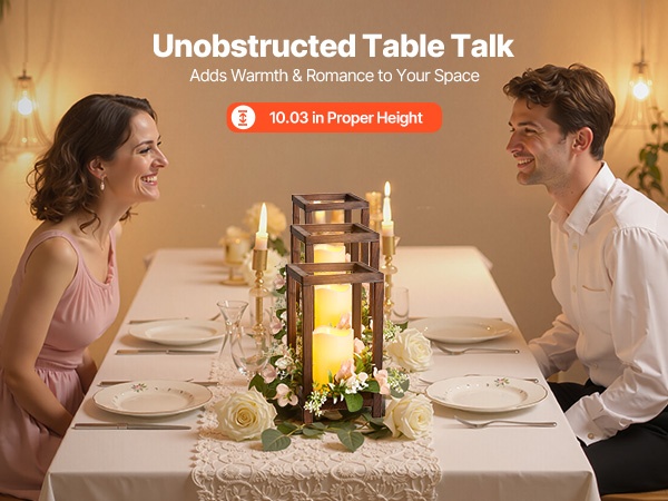 Vain 5.51 tuumaa korkeat puiset lyhdyt sopivat hyvin pöydän keskelle peittämättä näkyvyyttä. Ne luovat helposti lämpimän ja vuorovaikutteisen tunnelman ja tuovat jokaiseen kokoontumiseen kotoisan, romanttisen sävyn.