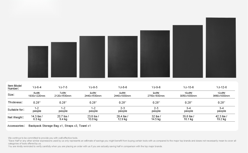 - Koko: 12x6 ft / 3660x1830 mm