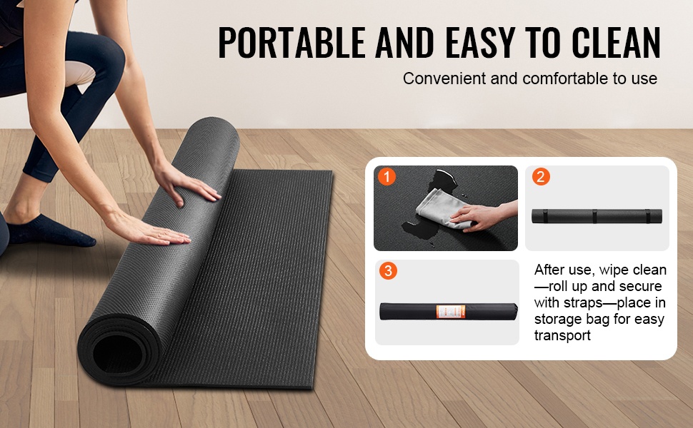 Maton mukana toimitetaan kuitupyyhe, kantohihna ja säilytyspussi. Pinta on helppo pyyhkiä puhtaaksi, ja maton voi rullata kätevästi kasaan kuljetusta ja säilytystä varten.
