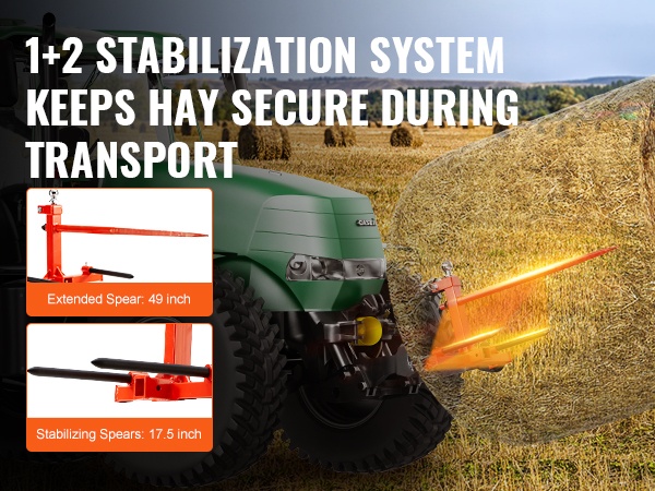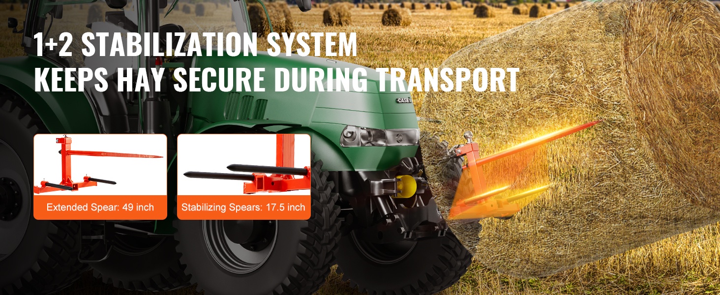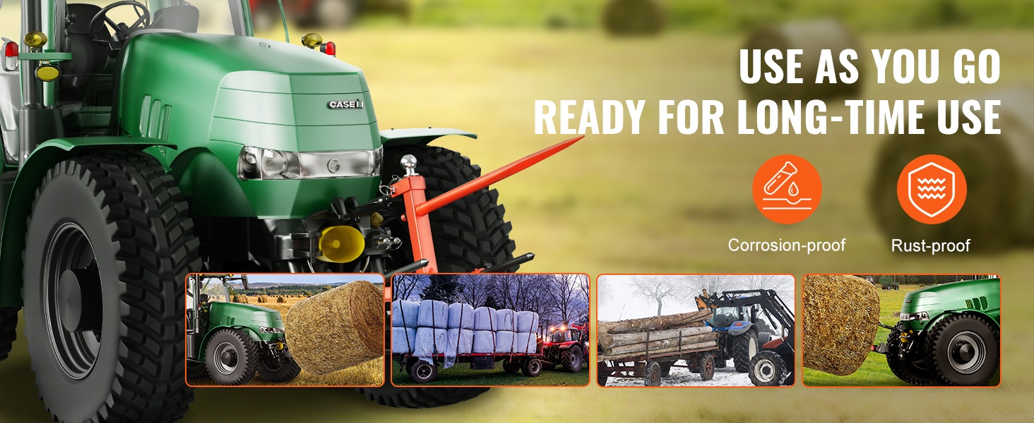 - Pituus: 49" pääpiikki helpottaa suurten paalien käsittelyä