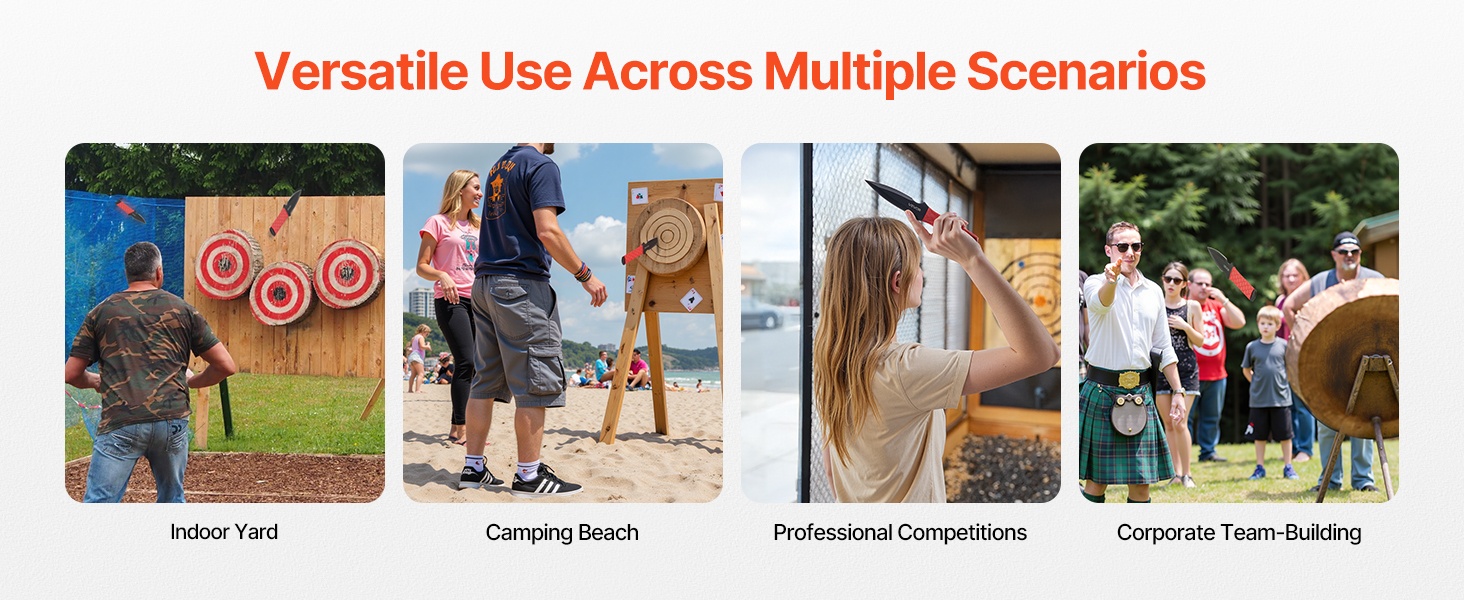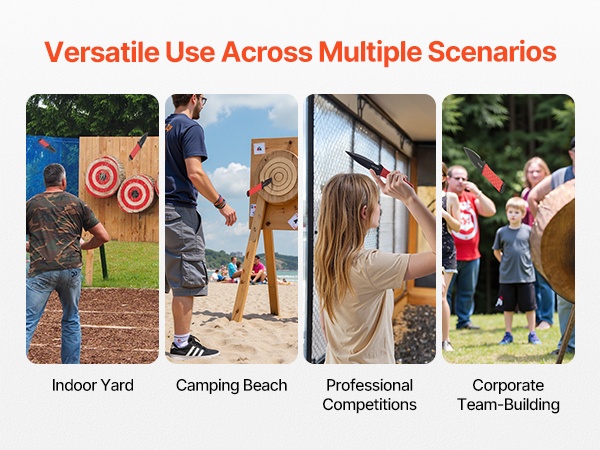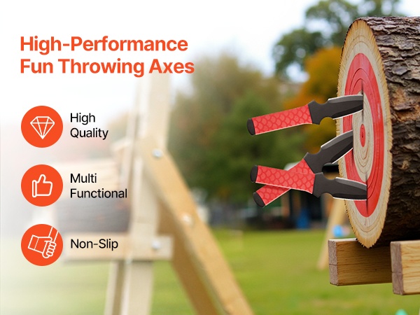 Monikäyttöinen heittokirves-setti on suunniteltu kotipihalle ja ulkoilijoille. Tasapainoinen painonjako, kestävät materiaalit ja helppo mukana kuljetettavuus tekevät seteistä sopivat tarkkuusheittoihin sekä yhteisiin pelihetkiin juhlissa, kisailuissa ja ulkoilutapahtumissa.