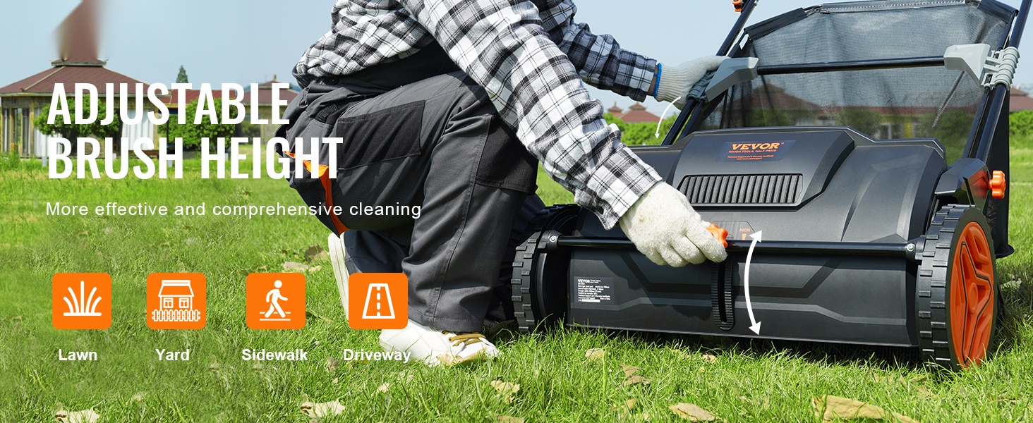 Laitteella puhdistat nurmikon, puutarhan tai ajotien tehokkaasti. Etuosan säätövivulla muutat harjasten korkeutta helposti, jotta saat talteen lehdet, rikkaruohot, neulaset ja muun roskan. Näin vältät raskaan käsiharavoinnin ja pidät pihan siistinä kevyemmin.