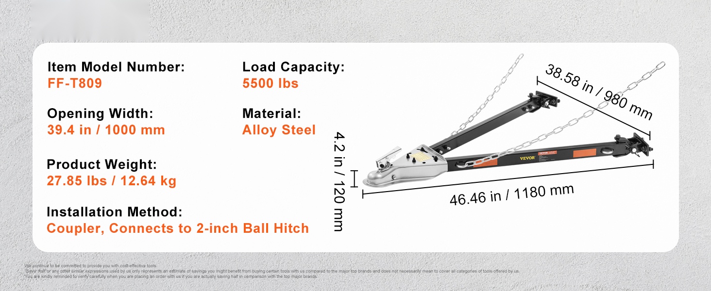 - Kantavuus jopa 5500 lbs / 2495 kg vakaa ja turvallinen hinaukseen.