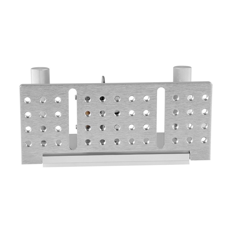 44 kierteitettyä reikää, 6 kiinnityspulttia ja 2 suorakulmaista puristuslevyä pitävät veitsen tukevasti paikoillaan. Tämä vähentää tärinää ja varmistaa tasaisen, tarkan teroituksen keittiö-, askartelu- ja ulkoiluveitsille.