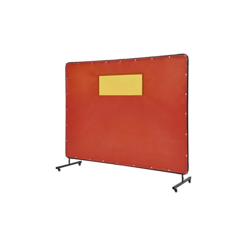 Liekinestolla käsitelty 6x8 jalkaa hitsausnäyttö metallikehyksellä, 6-tason UV-suoja, läpinäkyvä ikkuna ja neljä pyörää (2 lukittavaa) suojaa kipinöiltä, roiskeilta ja häikäisyltä työpajoissa.