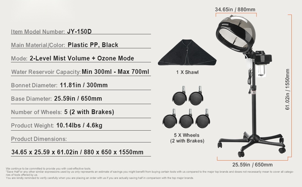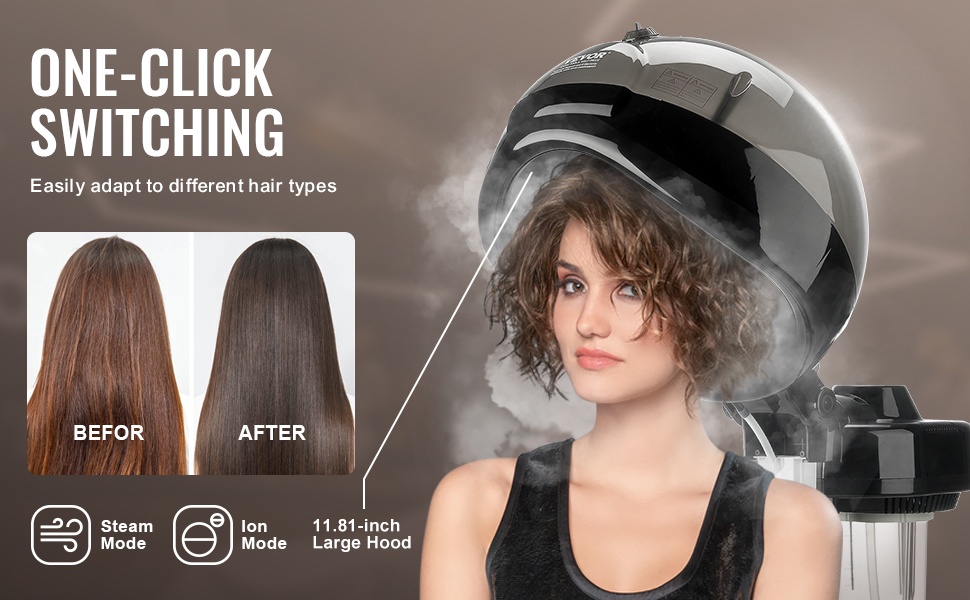 Tämä ammattitasoinen hiushöyrystin kosteuttaa hiukset perusteellisesti ja auttaa hoitoaineita vaikuttamaan syvemmin. 11.81-tuumainen kupu, 2 höyrytasoa, ionitila ja 0–60 minuutin ajastin tekevät laitteesta monipuolisen apuvälineen sekä kotiin että salonkiin.