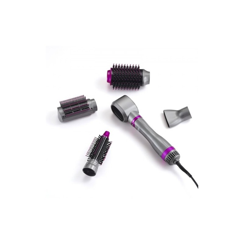 5-in-1 kuumailmamuotoilija ja hiustenkuivausharja yhdistää kuivauksen ja muotoilun yhteen laitteeseen. Pakkaukseen sisältyy 3 harjapäätä ja 2 suutinta, joilla voi luoda erilaisia tyylejä arkeen ja juhlaan.