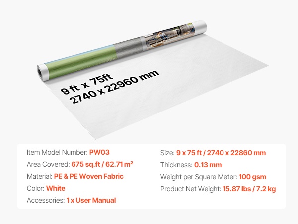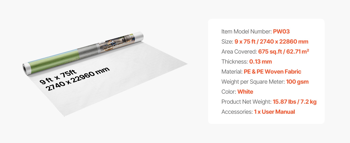 Jokainen höyrynsulkukalvorulla kattaa jopa 10000 sq.ft. Suuri peittoala tarkoittaa vähemmän leikkauksia, vähemmän saumoja ja sujuvampaa työtä työmaalla.
