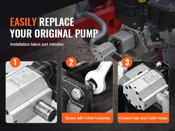 Pumppu on suunniteltu vaivattomaan asennukseen: se kiinnitetään moottoriin neljällä pultilla. Erityisiä taitoja tai monimutkaisia työkaluja ei tarvita, joten myös alkuperäisen pumpun vaihto sujuu yleensä nopeasti.