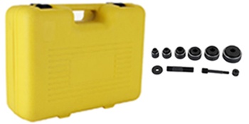 Tämä hydraulinen lävistinsarja on tarkoitettu siistien ja tasalaatuisten pyöreiden reikien tekemiseen metalliin. Kompakti ja kestävä rakenne yhdistettynä hydrauliseen 10T-mekanismiin helpottaa työskentelyä sekä työmaalla että huoltotöissä. Mukana tulee 6 erikokoista stanssia eri reikäkokoja varten.