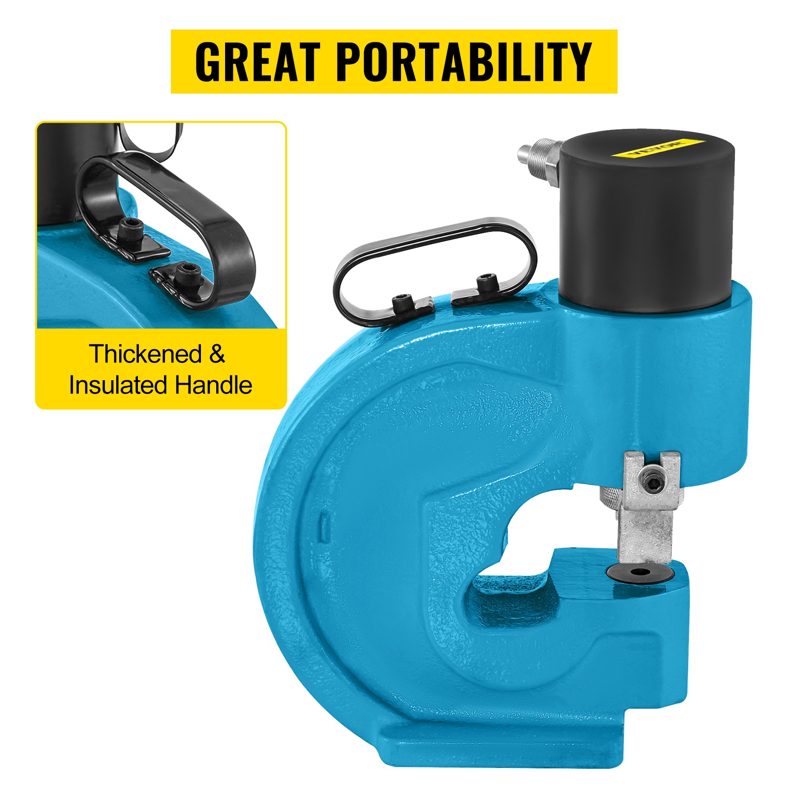 Hydraulinen 35T rei’itystyökalu tekee siistejä 3/8–3/4 reikiä paksuille kupari-, alumiini- ja teräslevyille. 110 mm kurkku, 4 terää, kestävä ja siirrettävä, sopii ammatti- ja rakennustöihin.