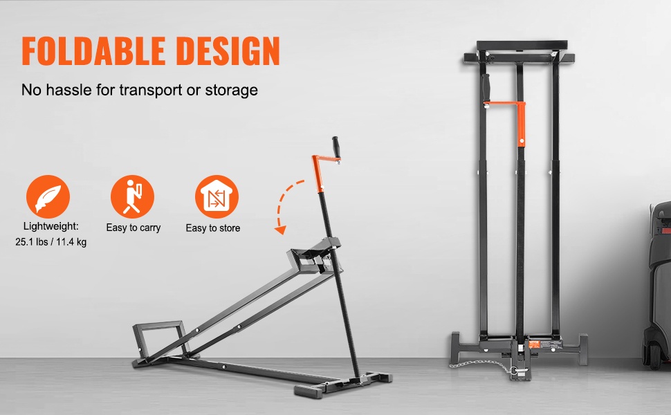 Ruohonleikkurin nostimessa on pyörät, ja se on irrotettava sekä taittuva. Tämä tekee siitä käytännöllisen päivittäisiin huoltotöihin kotipihassa ja helpottaa säilytystä, kun nostinta ei tarvita.