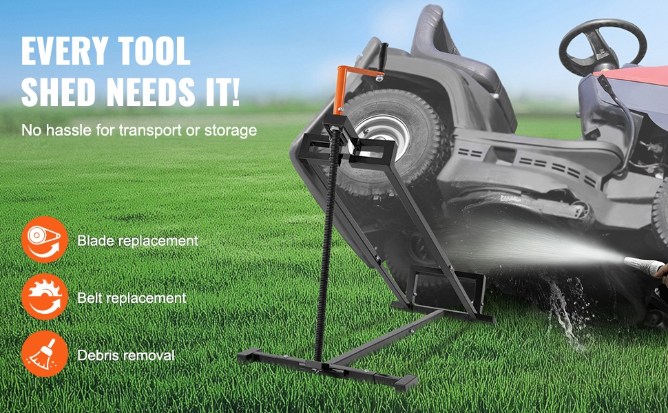 Tämä ruohonleikkurinostin käyttää hydraulijärjestelmää, jonka avulla nostat ajoleikkureita ja pieniä maastoajoneuvoja vaivattomasti jopa 500 lbs / 225 kg asti. Sopii hyvin esimerkiksi säännölliseen huoltoon, terien teroitukseen ja vaihtoon, hihnan vaihtoon sekä leikkuukannen ja rungon puhdistukseen roskista.