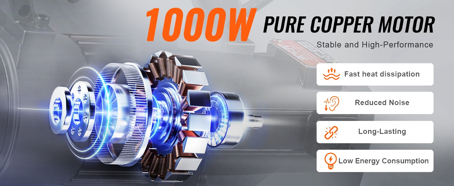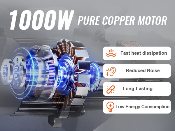 Puhdas kuparimoottori tarjoaa korkean tehon ja hyvän vääntömomentin, mikä parantaa leikkurin suorituskykyä ja kestävyyttä. Alhainen energiankulutus ja melutaso tukevat turvallisempaa työympäristöä.