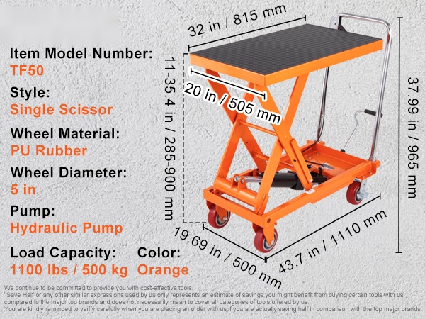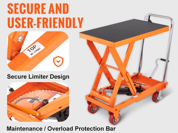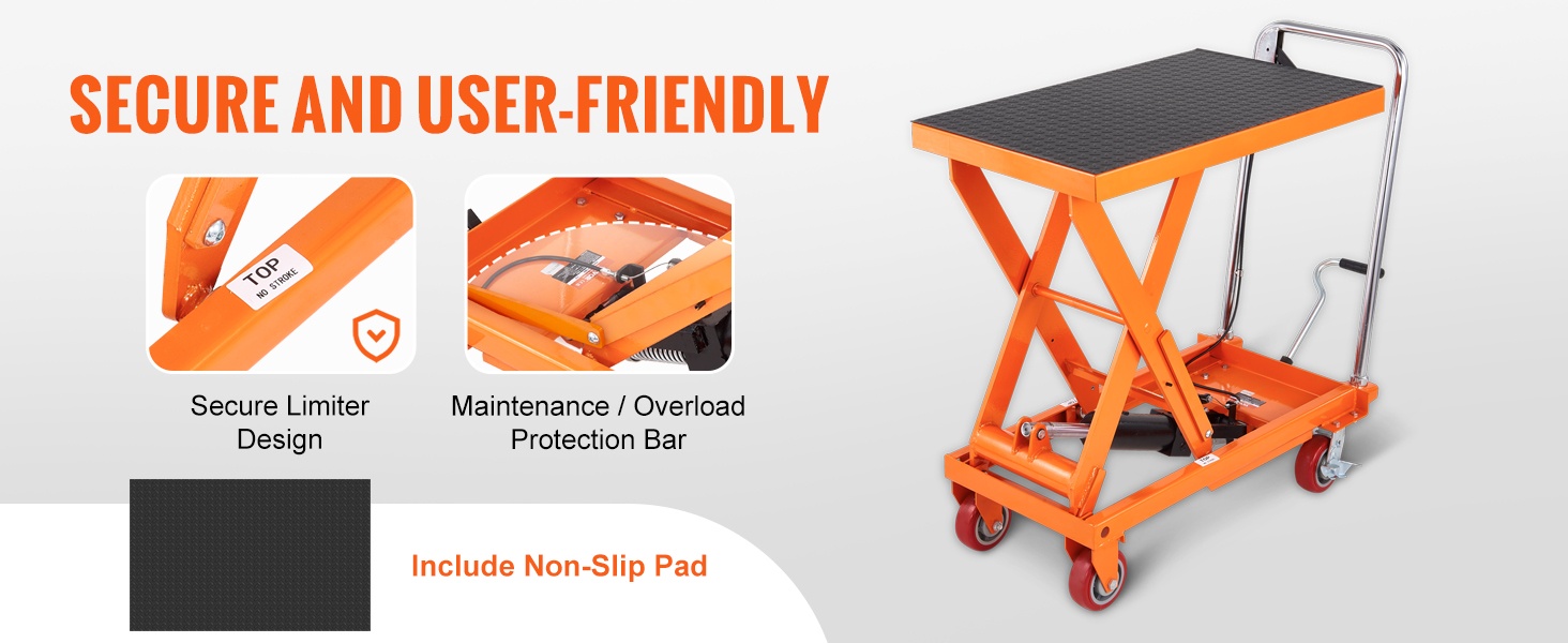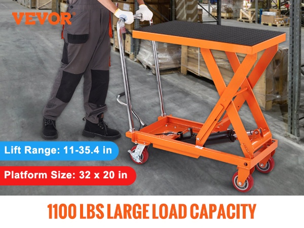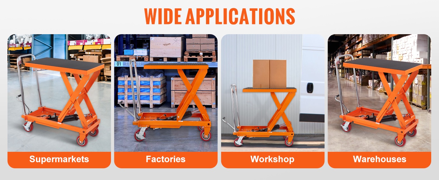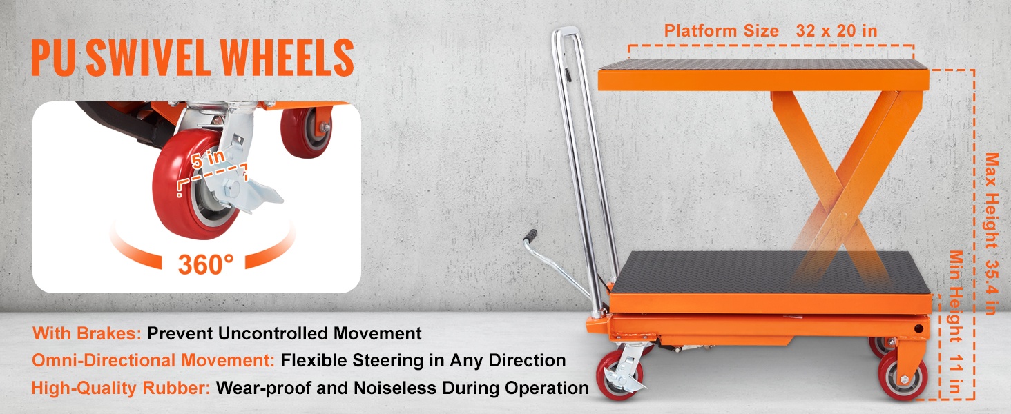 Hydraulinen nostopöytäkärri helpottaa raskaiden ja hankalasti liikuteltavien esineiden käsittelyä. Kuormankantokyky on 1100 lbs / 500 kg, joten vaunu soveltuu erilaisiin nosto- ja siirtotehtäviin varastoissa, tuotantotiloissa sekä muissa työympäristöissä. Pulverimaalattu, paksu teräsrunko on ruosteenkestävä ja suunniteltu pitkäaikaiseen käyttöön.