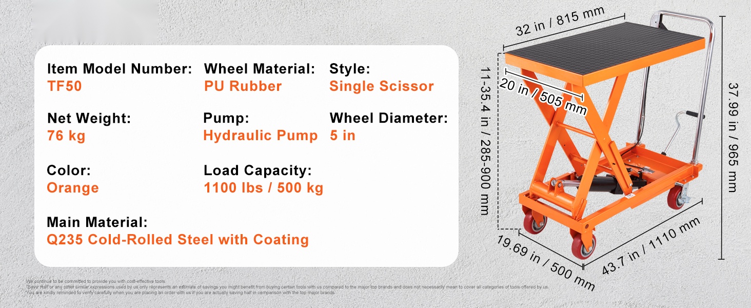 Kuormankantokyky 1100 lbs tekee saksinostopöydästä käytännöllisen ratkaisun toistuviin nostoihin. Paksu, pulverimaalattu teräsrakenne kestää kovaa käyttöä ja suojaa korroosiolta. Näin materiaalinkäsittely sujuu tasaisesti ja turvallisesti.