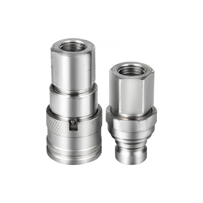 Tämä 1/2" rungolla ja 1/2" NPT-kierteellä varustettu tasopintainen hydraulinen pikaliitinsarja on valmistettu karkaistusta teräksestä ja sinkkipinnoitettu hyvän korroosion- ja ruosteenkestävyyden varmistamiseksi. Mukana toimitetaan suojakannet, ja liittimet soveltuvat korkeille paineille ja vaihteleviin lämpötiloihin. Sarjaa käytetään laajasti esimerkiksi maanrakennus-, öljy- ja kaivoskoneissa sekä kuormaajissa, kuten Bobcat, New Holland ja Kubota.