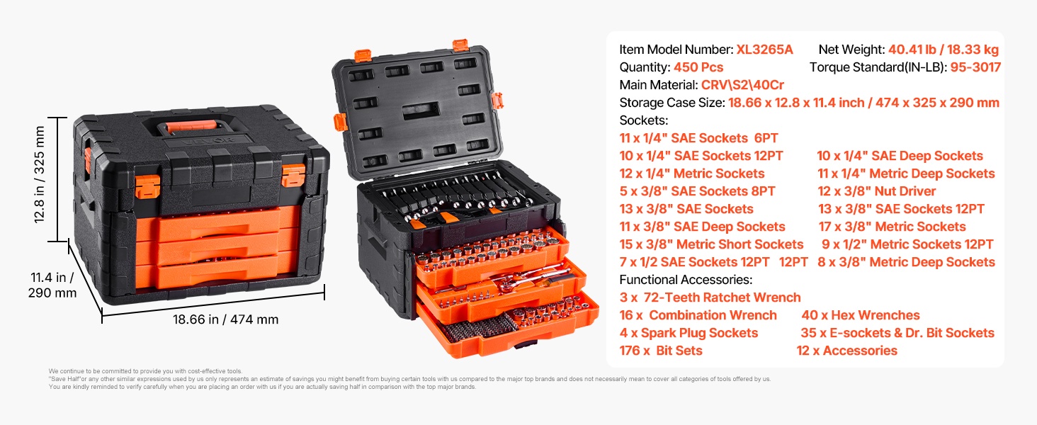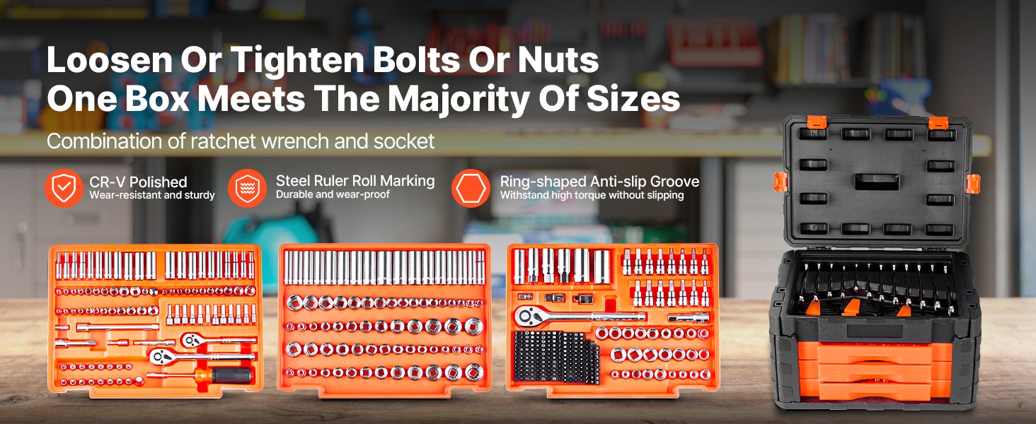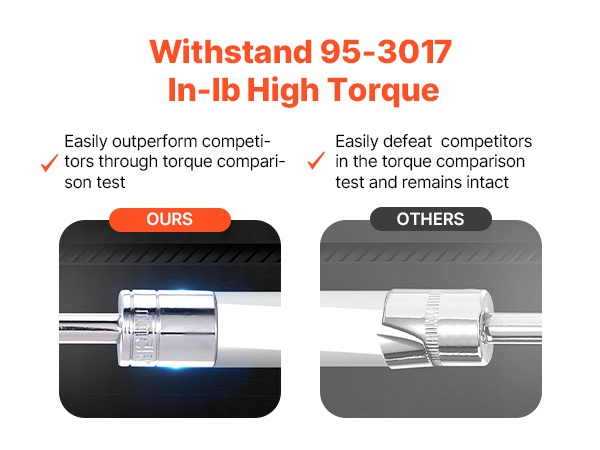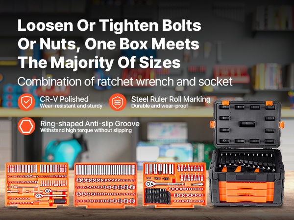 Laadukkaiden materiaalien ansiosta sarja kestää vääntömomentteja välillä 95–3017 in-lb. Se sopii vaativiin tehtäviin, kuten ajoneuvojen huoltoon ja kodin tai työpajan raskaampiin asennustöihin.