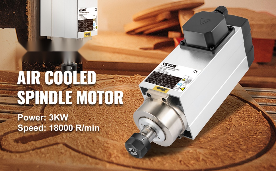 Ilmajäähdytteinen 4 KW kara ER25-istukalla CNC-jyrsintään ja -kaiverrukseen. Moottorissa on neljä laadukasta laakeria, tasapainotettu rakenne ja tehokas ilmanvaihtojäähdytys, jotka varmistavat vakaan käynnin, pitkän käyttöiän ja tarkan työn puulle, kivelle, metallille ja muille materiaaleille.