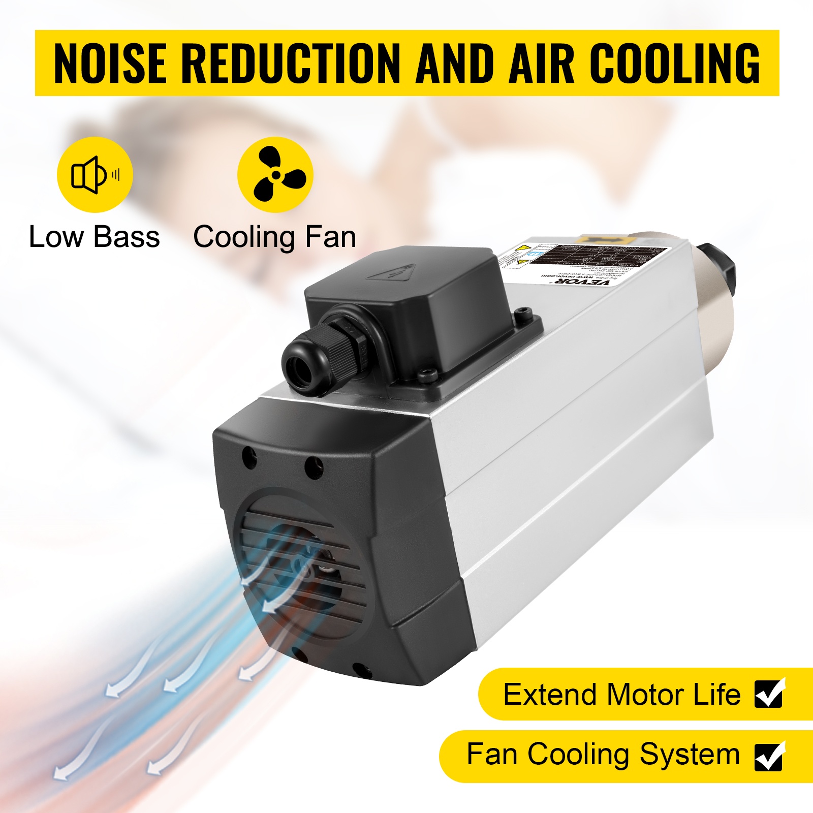 - Alumiinirunko ja happivapaat kuparikäämit kestävään käyttöön