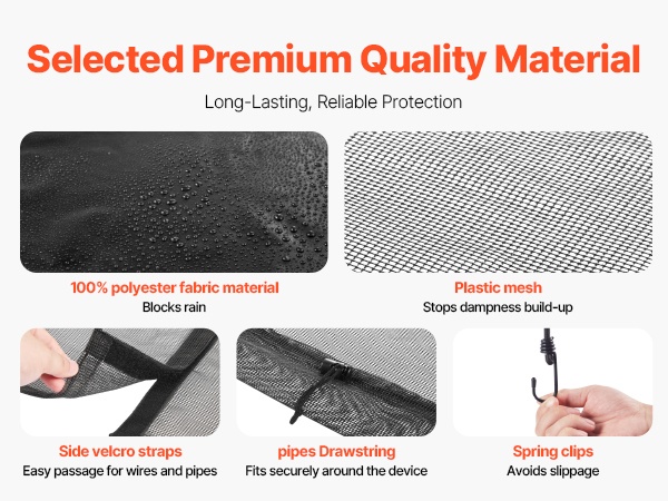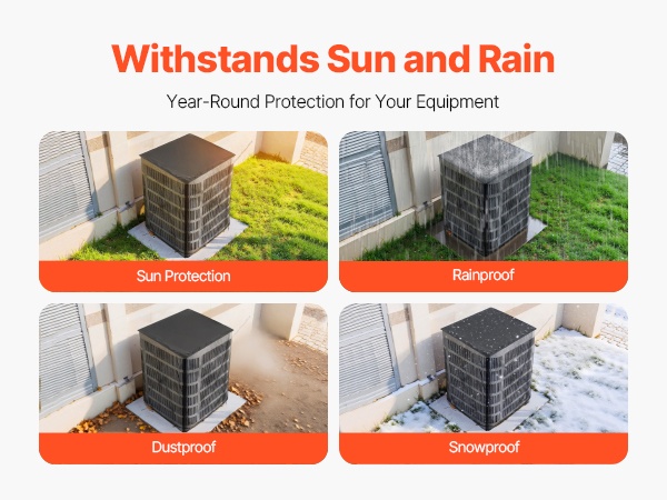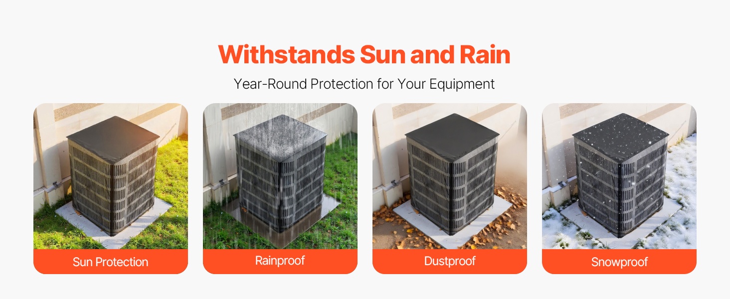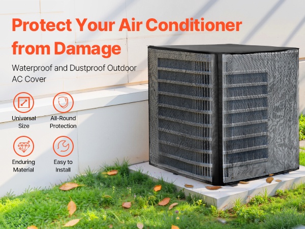 Tämä ulkokäyttöön tarkoitettu ilmastointilaitteen suojapeite suojaa laitetta ympäri vuoden sateelta, lumelta, auringolta ja lialta. Yleismallinen peite sopii monentyyppisiin ulkoyksiköihin ja auttaa pidentämään ilmastointilaitteen käyttöikää.